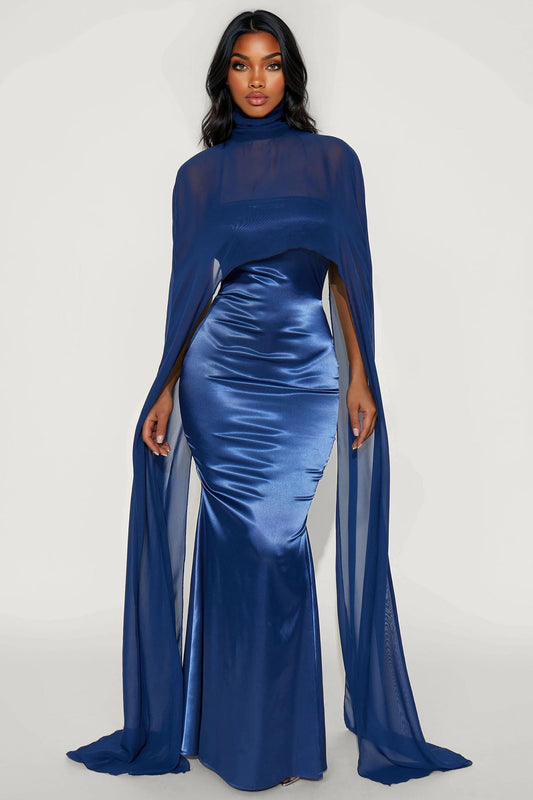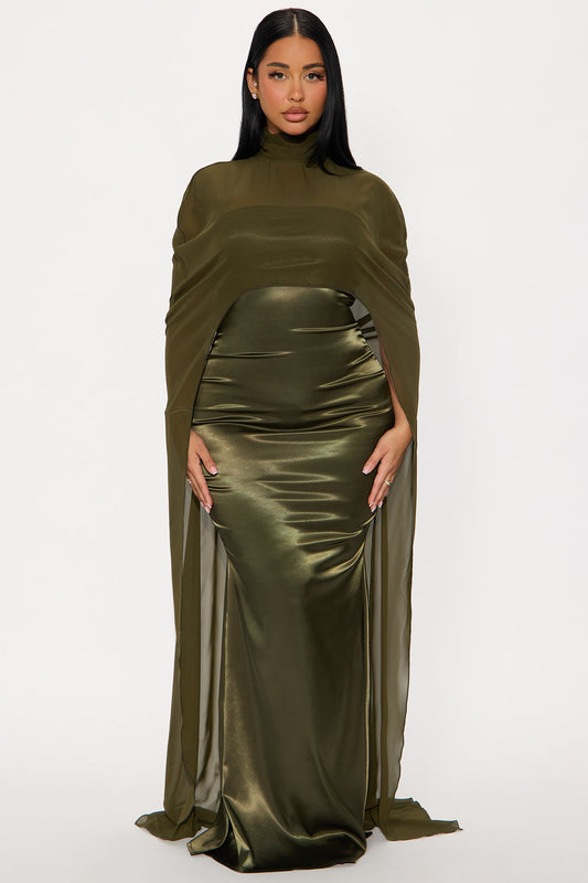 Available In Navy And Olive. Satin Gown Strapless Dress Straight Neckline Grip Tape Long Sleeve...