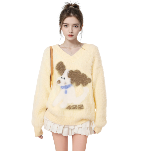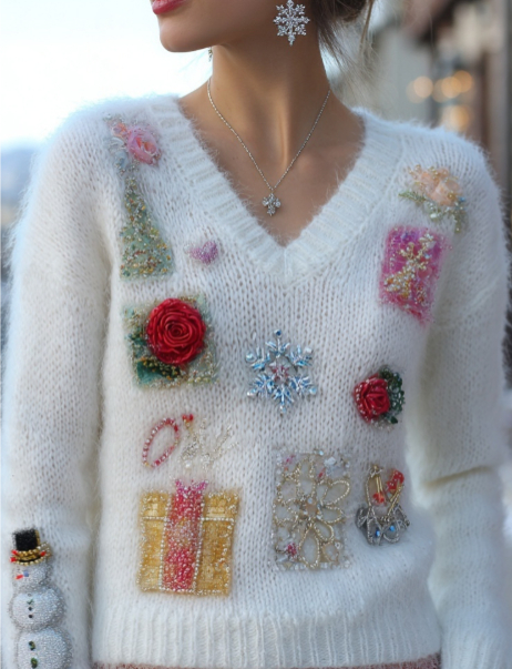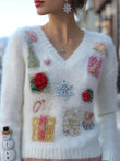 Hot-selling 3D Digital-print V-neck Womens Sweater For Halloween
