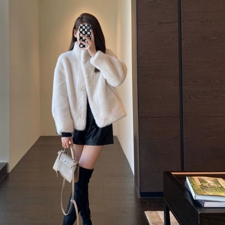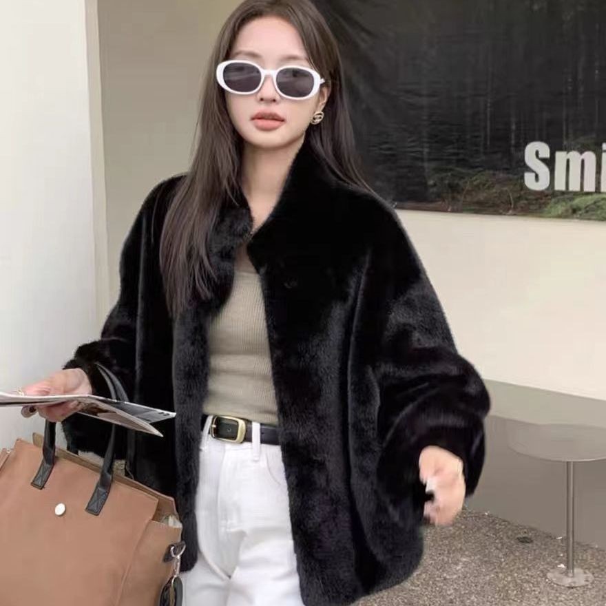 Womens Stylish Loose-fitting Fur-trimmed Collar Coat
