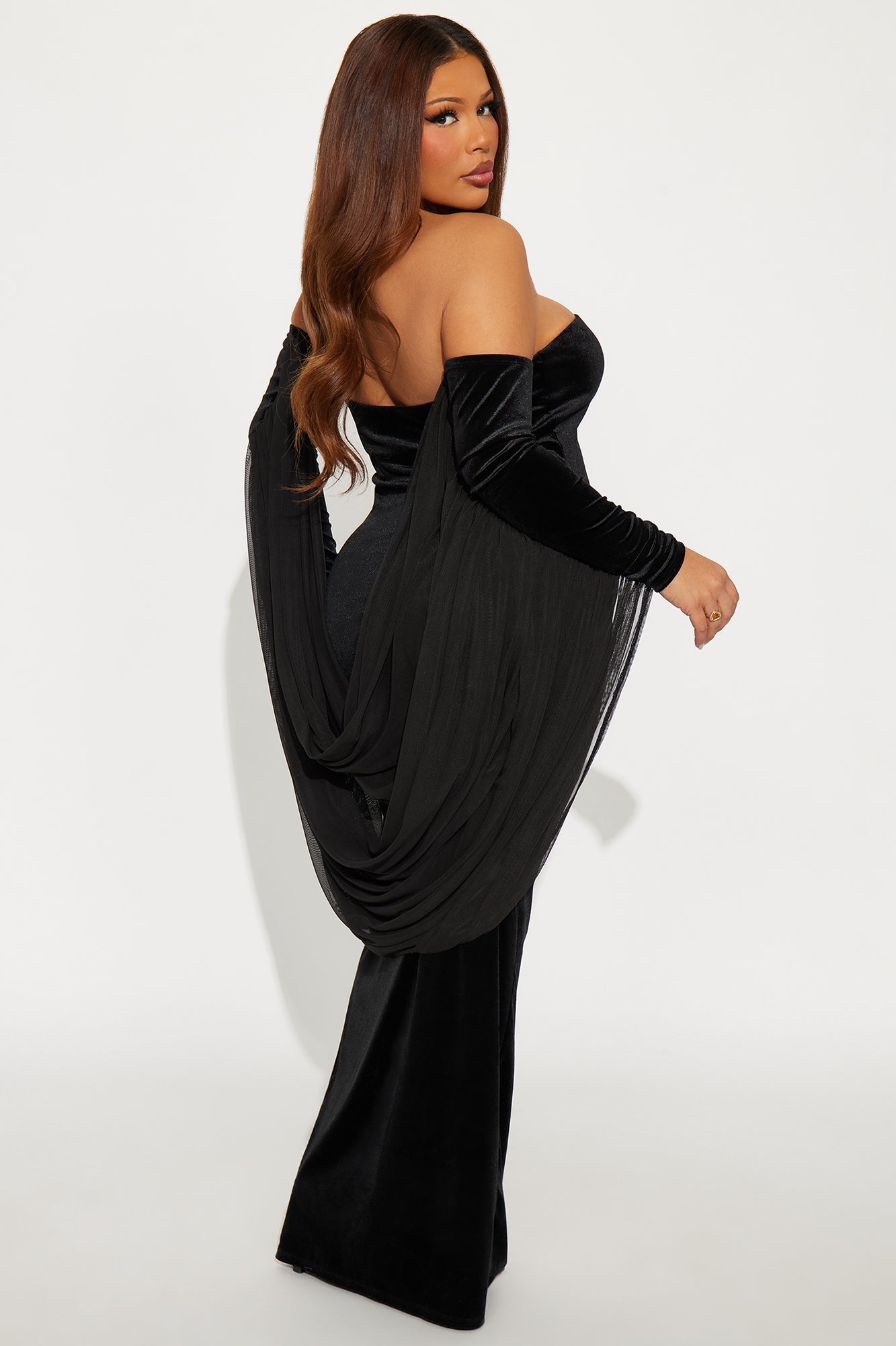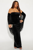 Whimsical Drape Velvet Gown - Black
